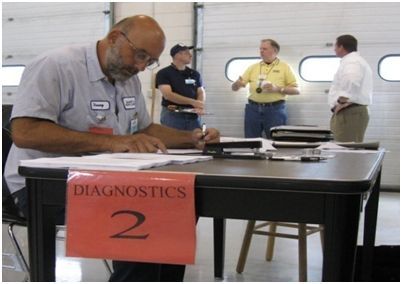 During the second portion of the competition, technicians must demonstrate the ability to diagnose, troubleshoot and repair various mechanical components found on school buses. Competitors will rotate through three diagnostic stations, which will involve actual vehicles, and a bench test situation. Inspectors will rotate through three stations requiring them to inspect all vehicle components and systems to identify defects.