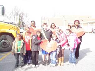 Whitaker Elementary Students present their bus drivers with valentines. |