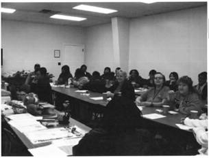 State Superintendent June Atkinson ate breakfast with and spoke to bus drivers at Brier Creek Elementary School. Each driver was presented with a handmade purse and valentines from their students. |