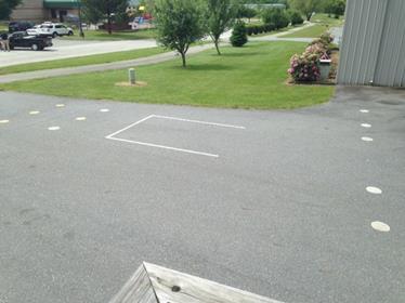 Graham County Transportation department has painted a permanent grid in the parking lot which allows bus drivers to pull in and quickly check for proper mirror adjustment.