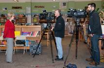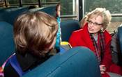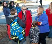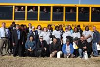 State Superintendent Dr. June Atkinson waited at the bus stop then rode the school bus to school on February 11, 2015 as part of the state’s Love the Bus celebration, which is combined with school bus driver appreciation week. After arriving at the school, Dr. Atkinson joined 75 bus drives from the Fuquay-Varina district in Wake County for a breakfast sponsored by HSM, a supplier of school bus seating products based in North Carolina. David Murphy of HSM also provided the drivers with HSM T shirts featuring the STOP FOR A LIFE logo which highlights the need for motorists to obey the school bus stop arm law.