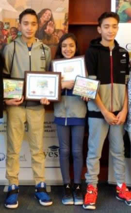 Among the top winners of North Carolina’s 2016 National School Bus Safety Week (NSBSW) Poster Contest are two brothers and their sister, all of whom are enrolled this year at Jamestown Middles School in Guilford County. Angel Krastev finished 3rd in the state competition in the Grades 6-8 Division. His brother, Petar, finished 1st in the state in that division and his poster was sent to the nationals in Kansas City. Sister Anita Krasteva finished 1st in the state competition for grades 3-5 (she was in 5th grade at Union Hill Elementary last year) and also competed nationally, where she took first place in her Division! | |