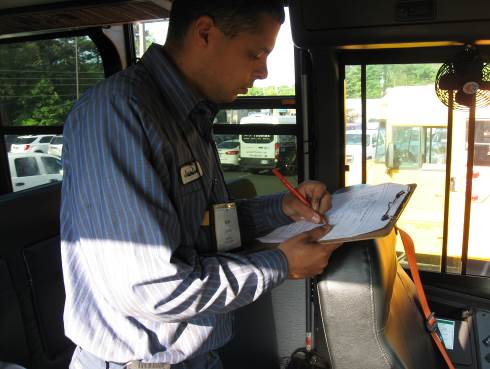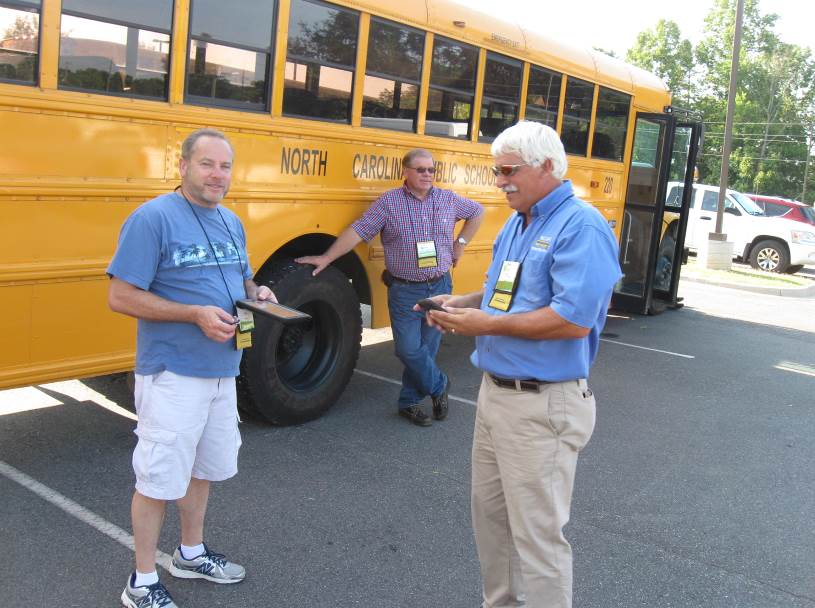 Wake County is the employer of the NCPTA Best School Bus Inspector contest. Ralph Trango (pictured above in center), in his 10th competition, took the top honor & $500.00 (his second state title) at the NCPTA conference held in Asheville. He and eleven other finalists inspected three different buses that were specially "set up" by DPI consultants Robert Taylor, Keith Whitley, and Randy Henson. Each bus had 10 defects to be identified in order to score points. The contestants also had to take a 50 question written test in order to qualify for the finals. Ralph also earns a free trip to NAPT in Kansas City during the month of November to challenge the best bus inspectors in the USA for the title of “America’s Best”. Ralph is no stranger to the national competition and has placed in all spots on the national level except 1st place. Ralph says he intends to get the “monkey off his back” this fall.