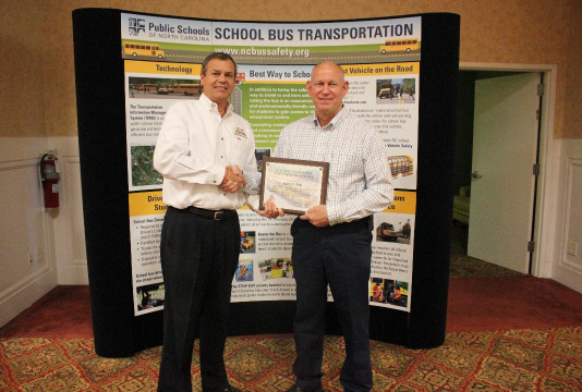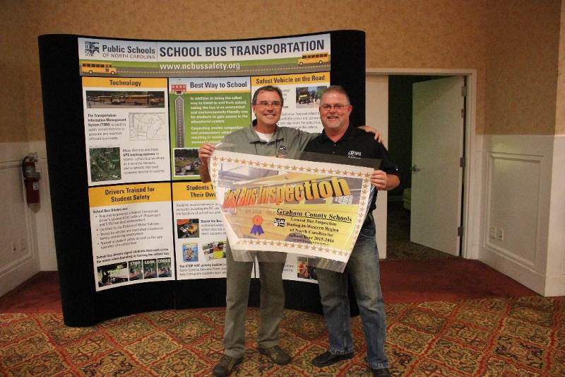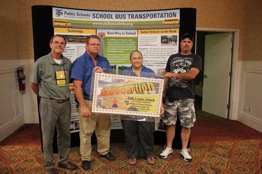 The best LEA transportation department inspection banners were handed out at the NCPTA conference at Asheville on June 23rd at the award banquet. The banners are awarded to the county with the fewest defects discovered over the 10% of buses inspected by DPI consultants. Recipients of the banners for 2015-2016 are Polk County/Graham County TIE (Western), Richmond County (Central) and Currituck County (Eastern). Congratulation goes out to all the employees in these counties and the extra effort it take to be the best!