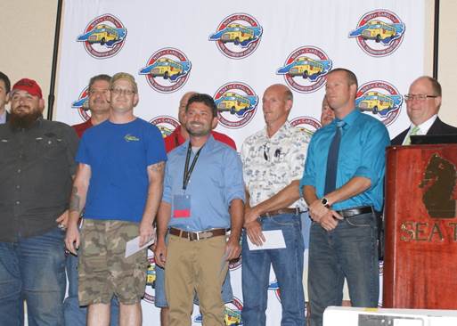 A fellow veteran of the annual competitions, Marc Lail of Rutherford County took Third Place and a prize of $100. 30 competitors completed a 50 question written test. The top 12 scores proceeded to the practical hands on event. Competitors were challenged to identify as many defects as possible on 3 dummy buses. |